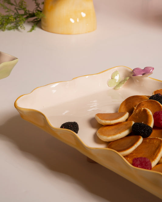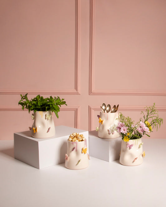 Handcrafted pastel ceramic tableware adorned with delicate butterflies, blending whimsical charm with magical elegance for every occasion.