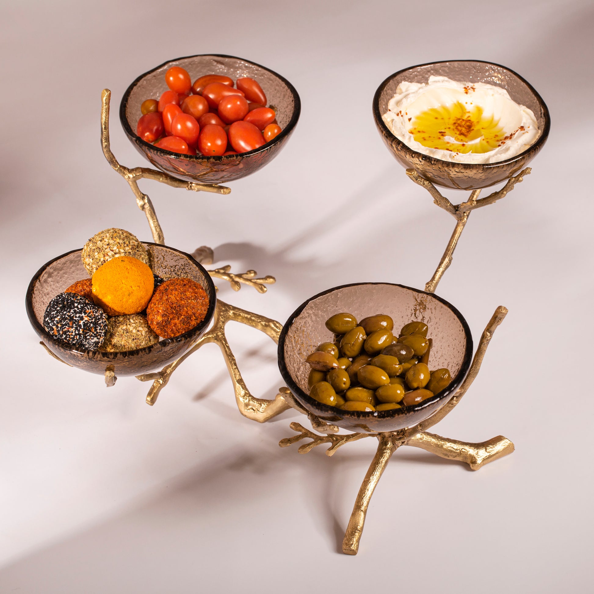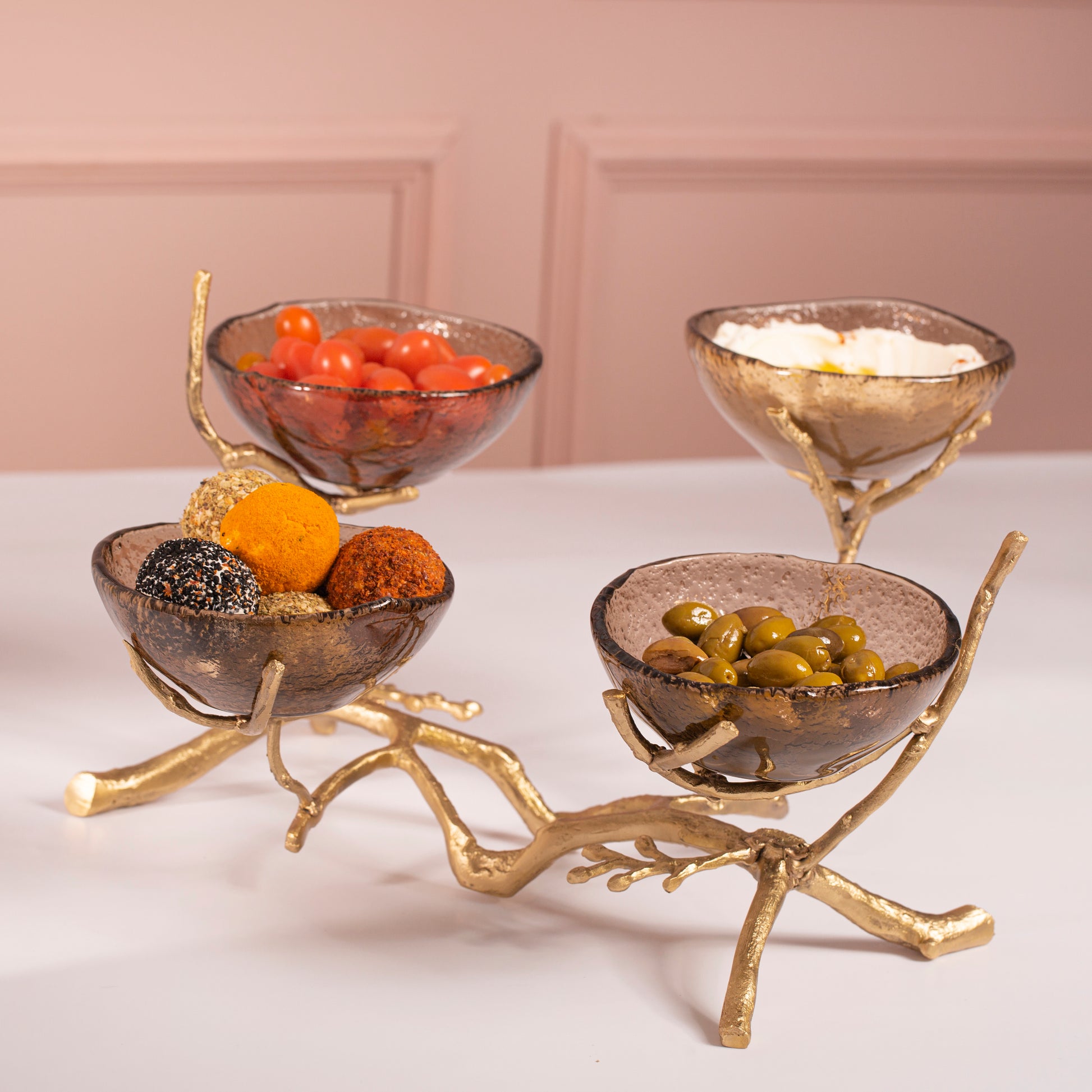 This artistic creation combines a vibrant infused glass bowl atop a unique handcrafted brass stand. The bowl is interchangeable, allowing you to customize the color that suit your mood or setting, make it both versatile and timeless sophisticated.